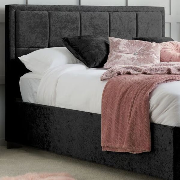 The Hannover Black Crushed Velvet Fabric Bed has a padded headboard that is 101cm high and a footboard that is 33cm high. Since the headboard is padded, it makes it comfortable to lean back against and relax.
